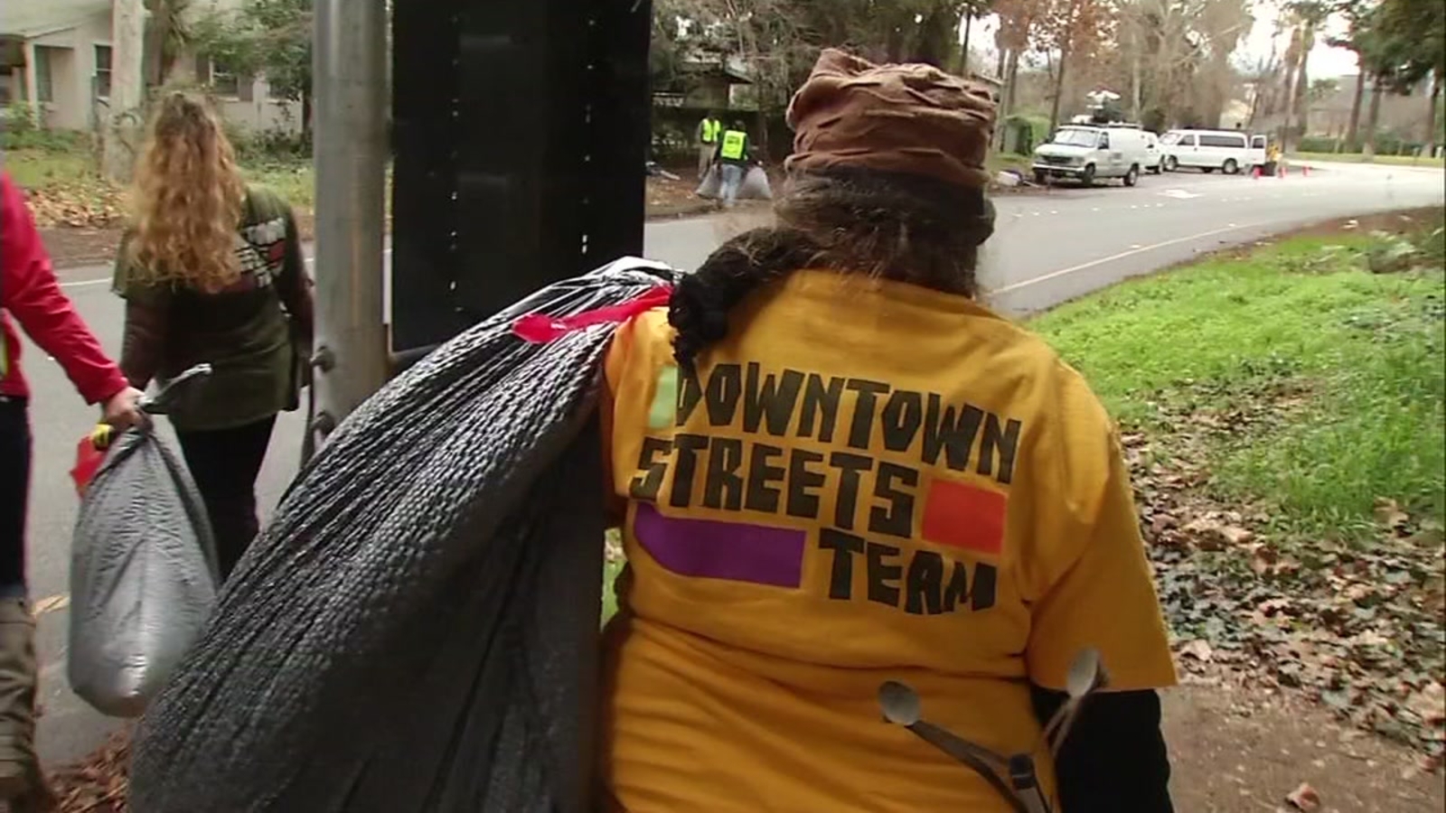 Members of the Downtown Streets Team, which were recruited from the homeless population, are helping the mayor to clean up the city.