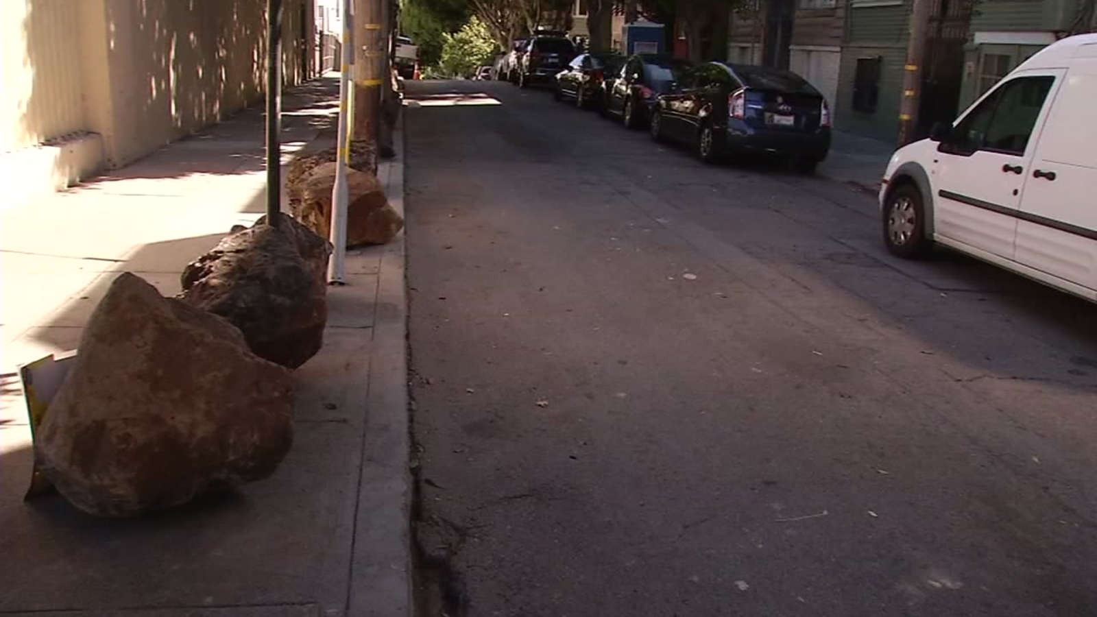 SAN FRANCISCO (KGO) -- The Bay Area's high housing costs have contributed to the current homeless crisis. In one San Francisco neighborhood, people have put out boulders on the sidewalks so that there's no room for tents.