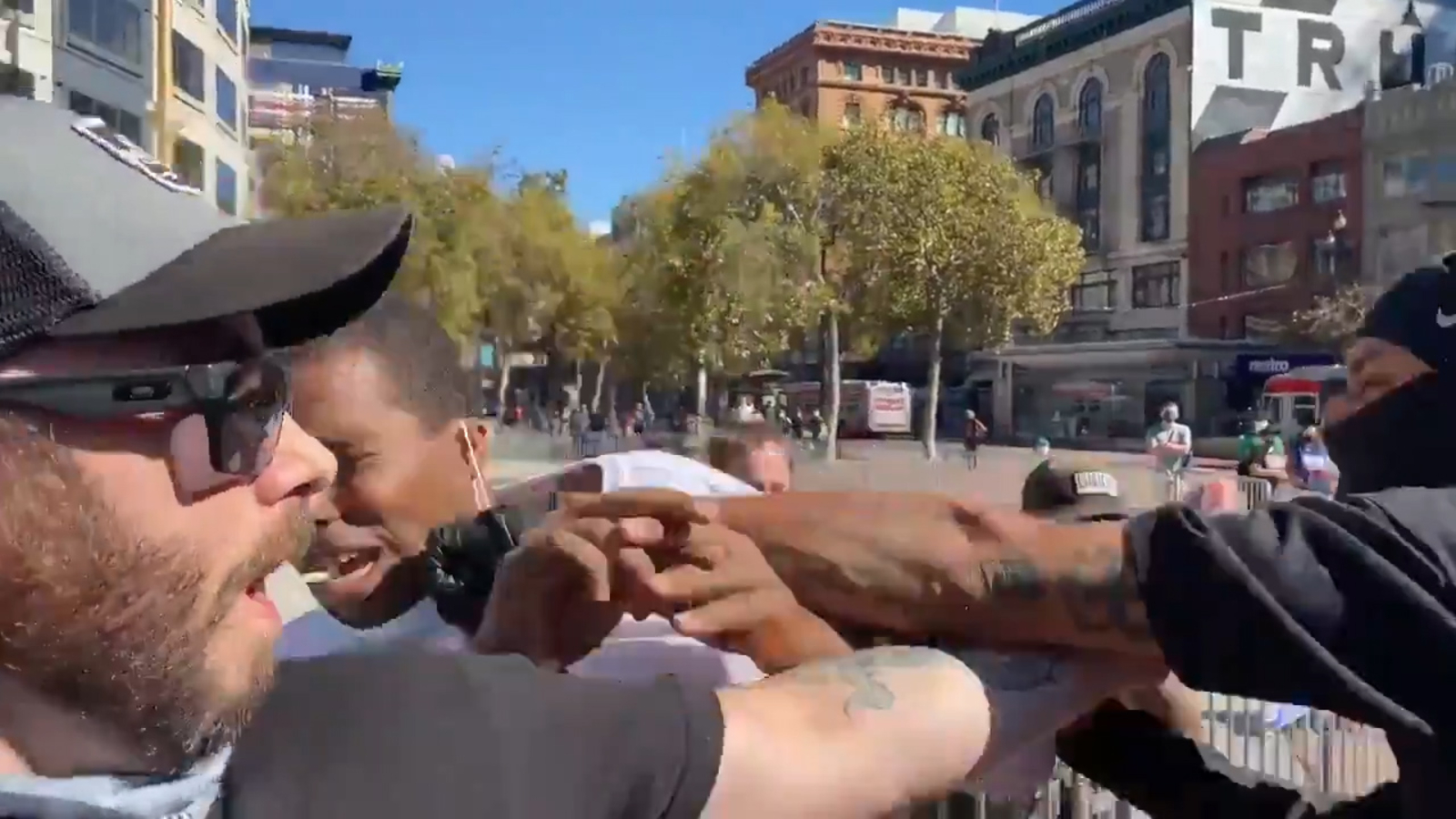 SAN FRANCISCO (KGO) -- The San Francisco Police Department says they've made an arrest after a free speech rally and protest against Twitter turned violent on Saturday.