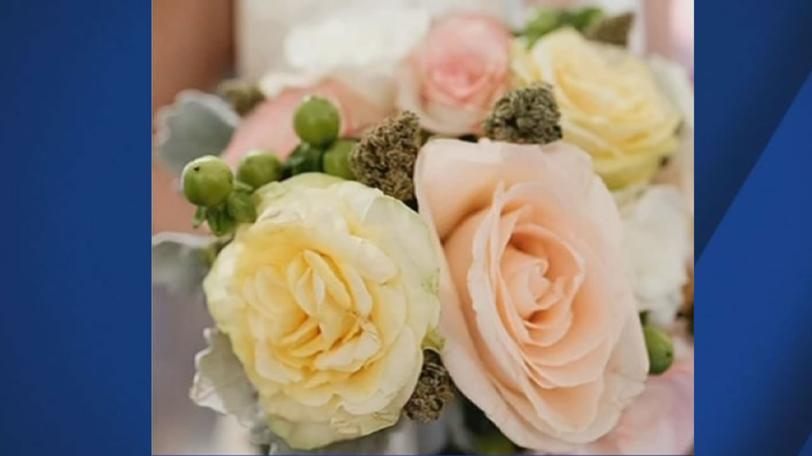 That includes everything from bouquets and boutonnieres filled with bud, to pot party favors.
