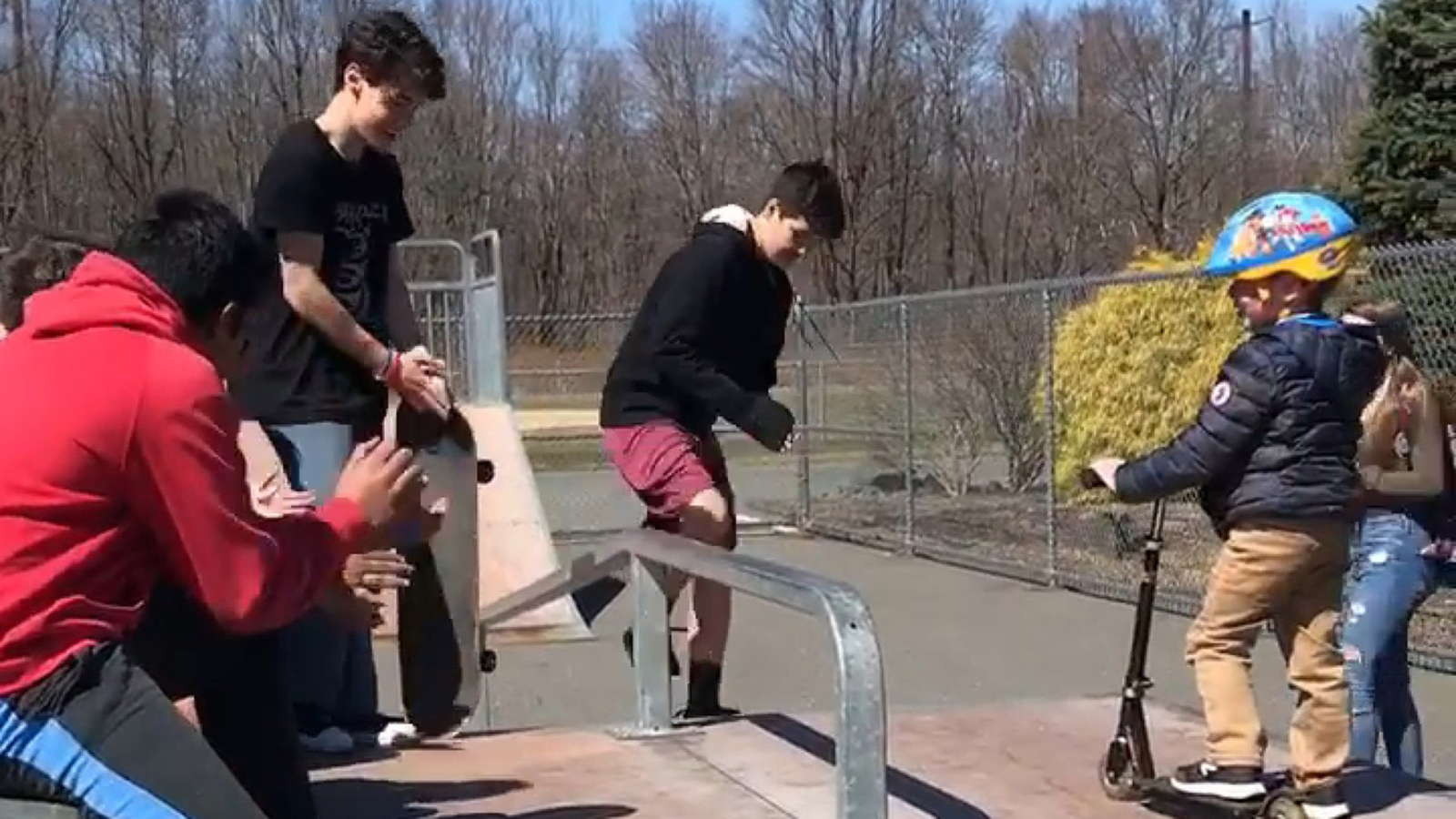 Until the other kids came along and started interacting with him. "At first he started because he wanted to go down the ramp so I started giving him tips so he wouldn't fall," said one of the kids,13-year-old Gavin.