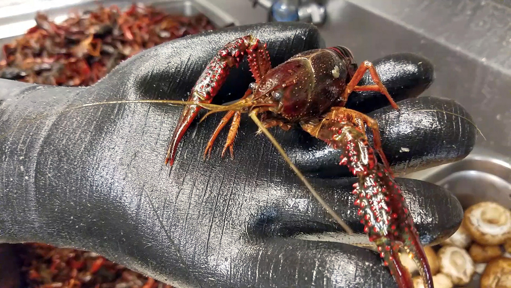 Once they're collected from the fields, the crawfish are soaked in a freshwater bath for a couple hours for purging and cleaning, then sorted and bagged. The whole process begins early in the morning and wraps up a little before noon.
