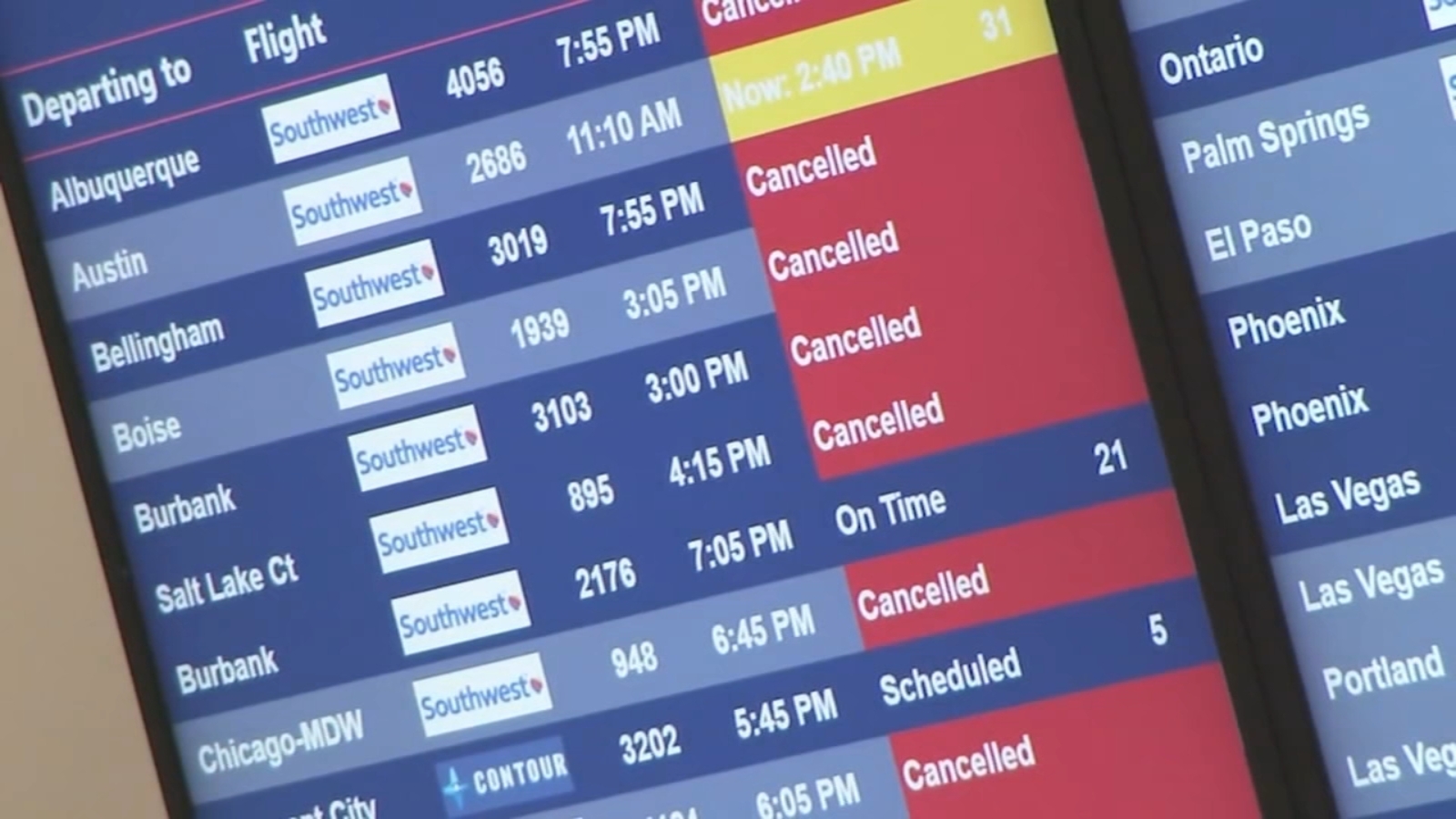 Over at the Burbank airport, 82% of Southwest flights were canceled.