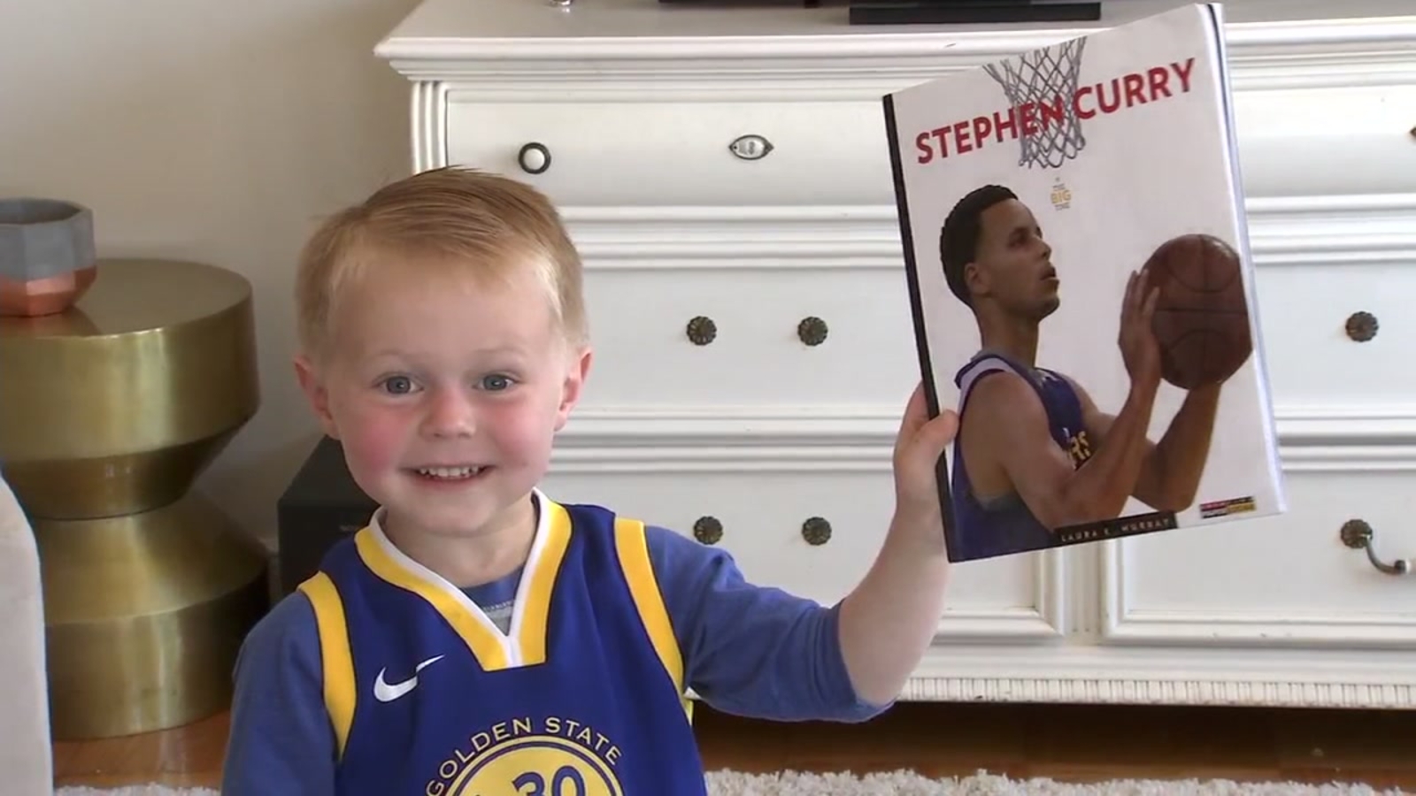 He also loves wearing his Warriors number 30 Steph Curry jersey, proclaming his devotion.