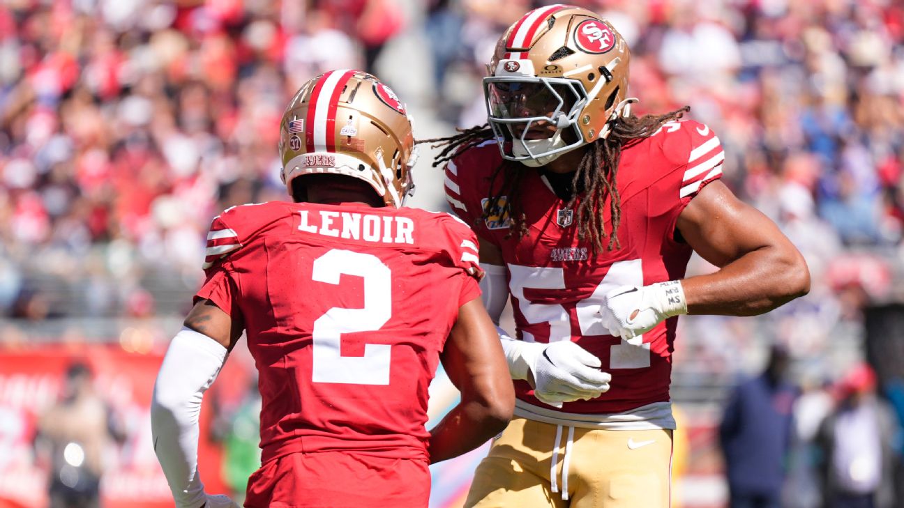 As the Niners clung to a three-point second quarter lead, Cardinals kicker Chad Ryland set up to boot the game-tying field goal. Ryland's kick was a bit low, as Niners defensive tackle Jordan Elliott got his hand up to block it. Cornerback Deommodore Lenoir scooped it up and raced 61 yards for the first touchdown of his career.
