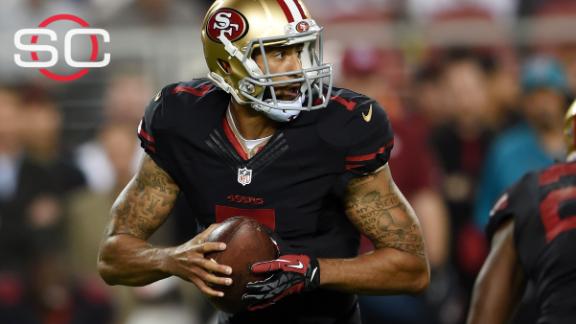Kaepernick completed 17-of-26 passes for 165 yards and rushed for 41 rushing yards in Monday's 20-3 win over Minnesota on Monday. More importantly, Kaepernick looked poised and patient, throwing first instead of his past tendency to take off.