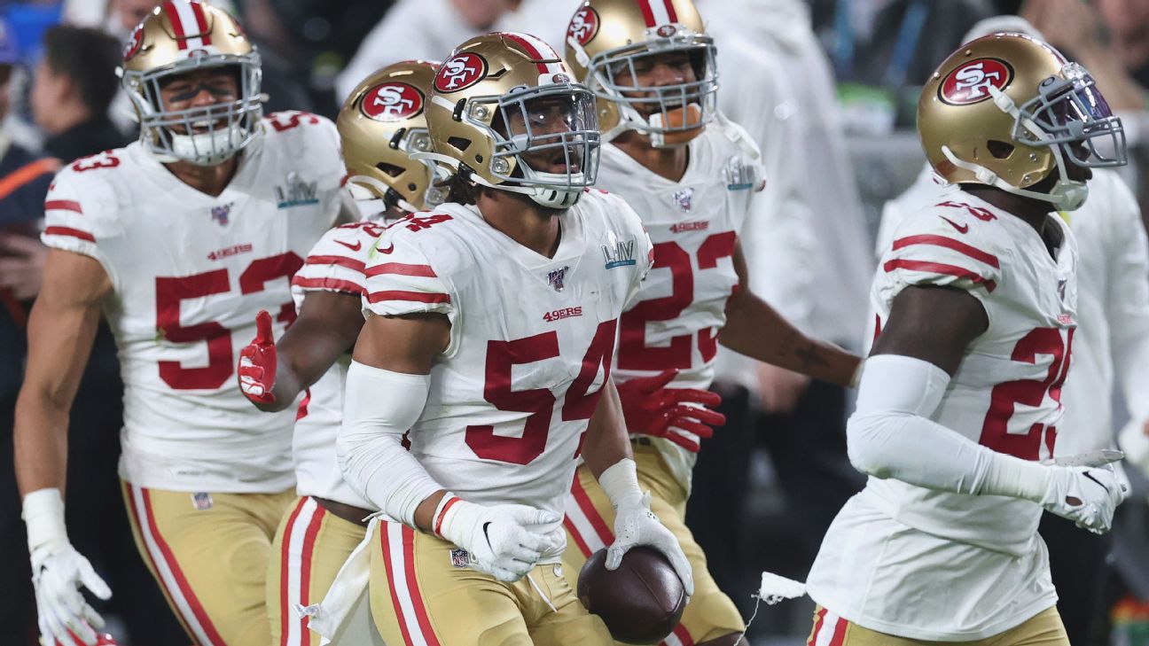 MIAMI GARDENS, Fla. -- The San Francisco 49ers defense missed an opportunity for a big takeaway when end Nick Bosa stripped the ball from Kansas City quarterback Patrick Mahomes, but Mahomes fell on it.