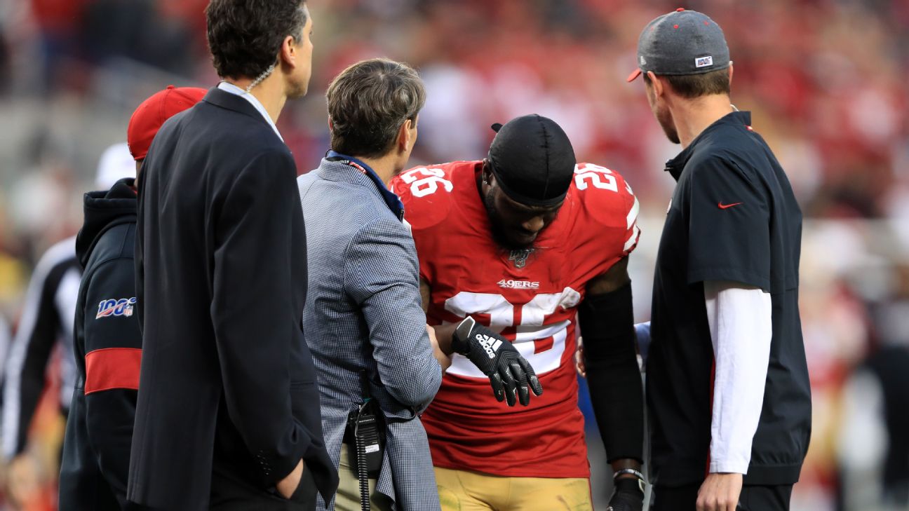 Coleman rushed for 21 yards on six carries before the injury, which left the running back duties in the hands of Raheem Mostert, who rushed for 220 yards and four touchdowns, and Matt Breida. Fellow running back Jeff Wilson Jr. was a pregame inactive.