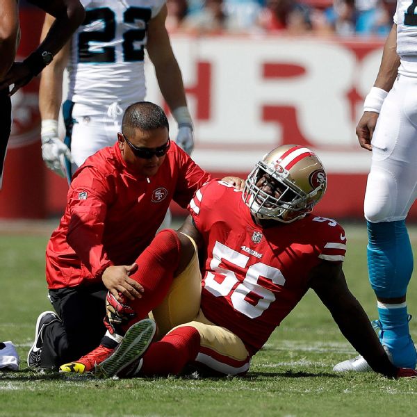 "He was playing well," Shanahan said. "He was around the ball a ton. He got close to a pick, was near another one, made a good play on the screen right the play before he got hurt. Ripped the ball loose, McCaffrey's knee was down, but he was playing well."
