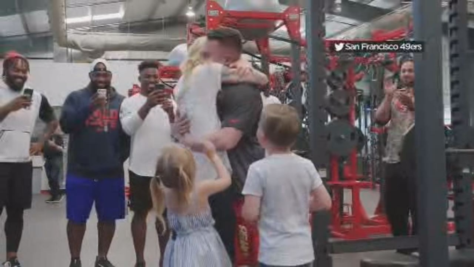 U.S. Air Force Technical Sergeant Rob Thomas' family thought they were just getting a tour of the stadium when they were brought into a 49ers weight room.