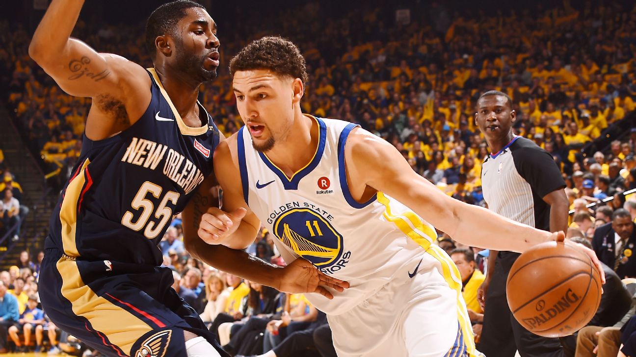 OAKLAND, Calif. -- The Golden State Warriorsrouted the New Orleans Pelicans by 22 points in Game 1 of their second-round playoff series, but the road team's pace took a lot out of the defending champions on Saturday night.