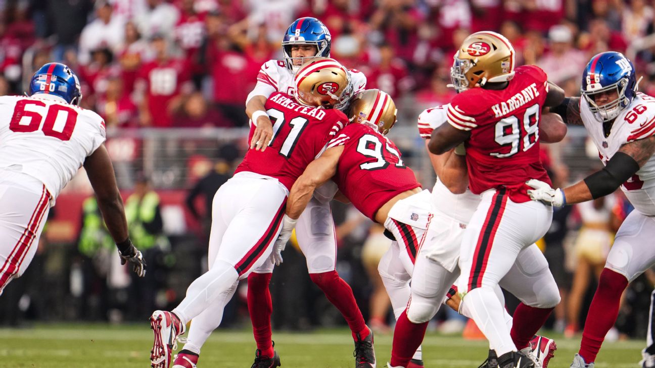 The San Francisco 49ers defensive end jokingly called out Jones after the New York Giants lost 24-3 to the Seattle Seahawks on "Monday Night Football." The Seahawks were all over Jones throughout the night, tying a team record with 11 sacks (they sacked Jones 10 times and Parris Campbell once) while holding Jones to just 203 yards passing and forcing two interceptions.