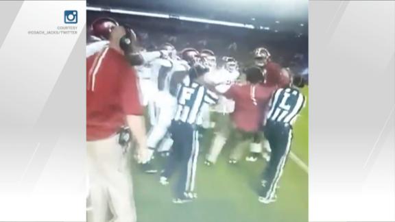 "We picked the ball off and came down and then I remember we were getting close to the sideline and again, 74 [Robinson] and one of our players were coming. Somebody flipped over another one and I got up and I saw a lot of our players coming over, and I knew something good wasn't going to happen. So I jumped in front; I faced my players because I wanted to be nonconfrontational, and the rest is what happened.