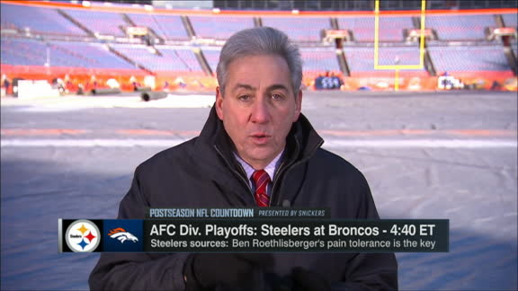The Steelers and Denver Broncos kick off their AFC divisional playoff game at 4:40 p.m. ET.