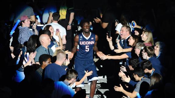 Fans began lining up early Friday afternoon for First Night, which began with an autograph session that included every player from both teams. Nine-year-old Lucas Espinosa of Guilford was among those who met his heroes. He even got a fist bump from men's coach Kevin Ollie.