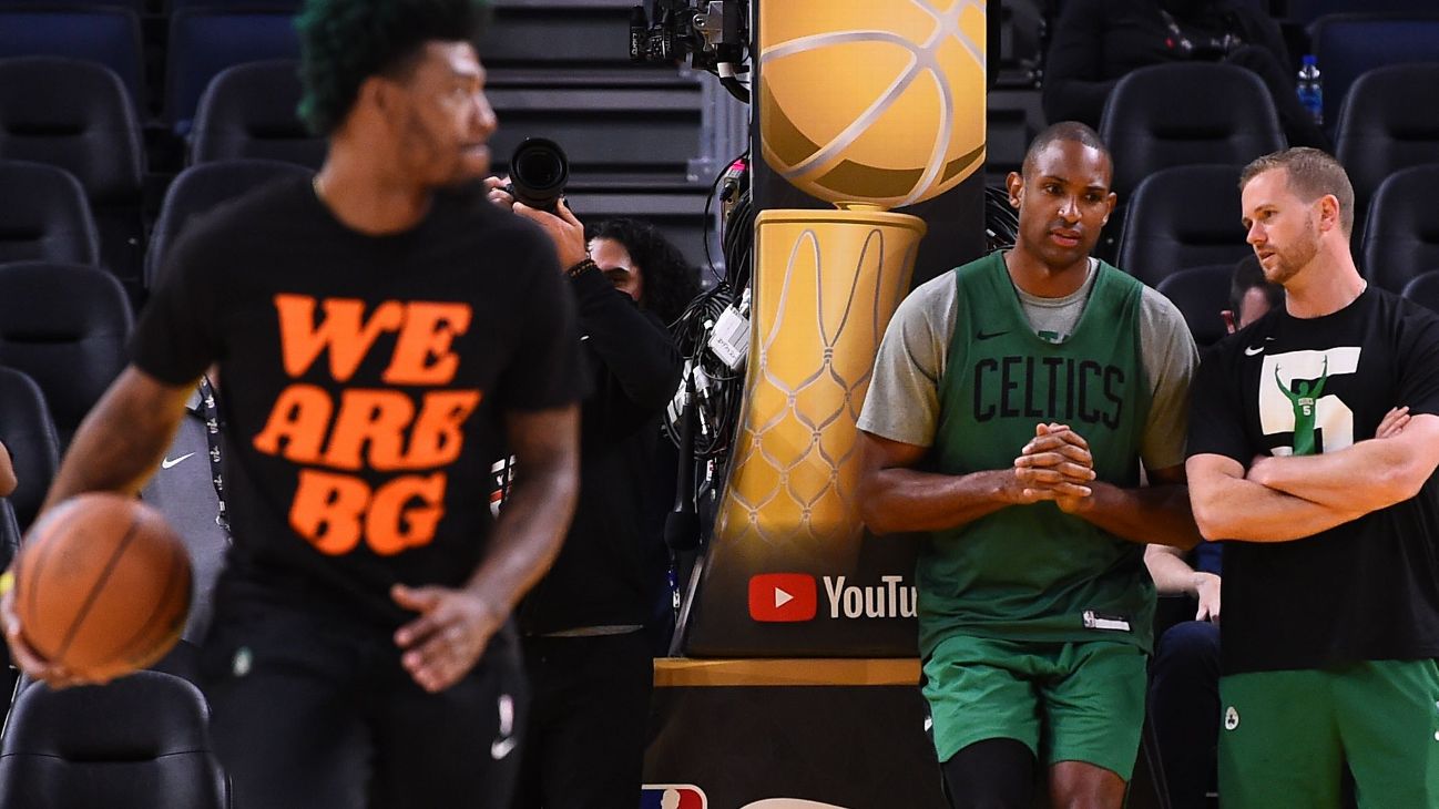 SAN FRANCISCO -- Members of the Boston Celtics wore T-shirts with "WE ARE BG" written across them at practice Saturday ahead of Game 2 of the NBA Finals in support of WNBA superstar Brittney Griner, who remains detained in Russia.