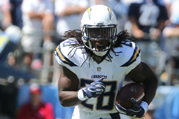 Second-year pro Melvin Gordon suffered a hip injury midway through the opening quarter. While trying to recover a Philip Riversfumble, Gordon was hit in the back by Carolina linebacker Thomas Davis.