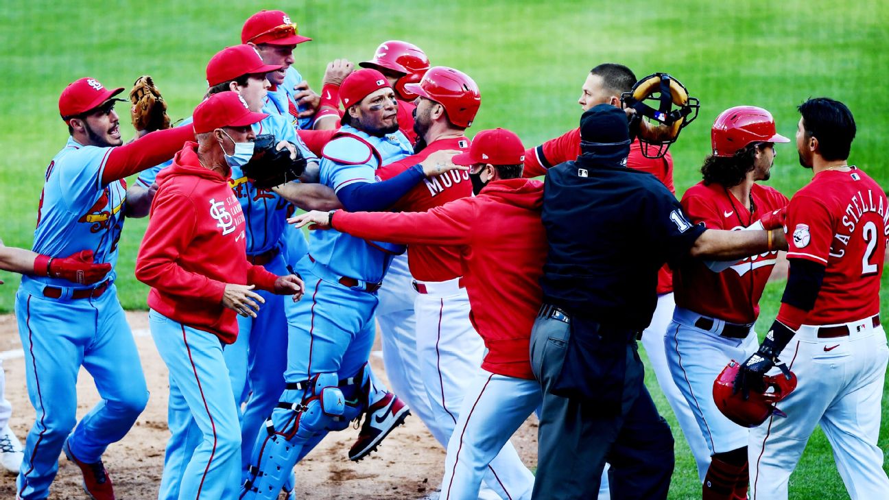 Back in 2010, the Cardinals and Reds got into a major brawl at Cincinnati. Molina and Brandon Phillips began barking at the plate, and eventually Reds pitcher Johnny Cueto got pinned against the backstop and tried to kick his way out.br/]