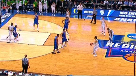 Oregon's Dillon Brooks said Krzyzewski told him that he's "too good of a player to be showing off at the end," after the sophomore hit a 3-pointer near half court when the Ducks had an 11-point lead with 10 seconds to play. Brooks said he told Duke's coach that he was right.