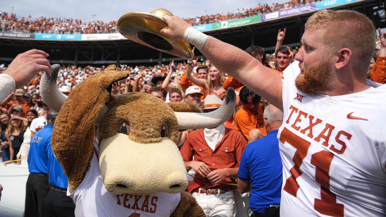 Meanwhile, Texas defensive lineman Moro Ojomo brought a little Fair flavor inside the stadium, conducting interviews while eating a smoked turkey leg, a nontraditional postgame meal.