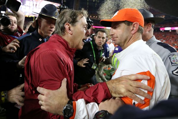On the eve of No. 2 Clemson's bout with top-ranked Alabama in the College Football Playoff National Championship Presented by AT&T, Swinney couldn't help but take a minute to commend Saban and the job he has done in his 10 seasons at Alabama.