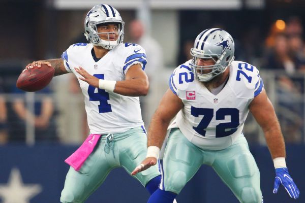 ARLINGTON, Texas -- With a 13-yard completion in the first quarter to Brice Butler, Dallas Cowboys quarterback Dak Prescott established an NFL rookie record with his 135th straight pass without an interception.