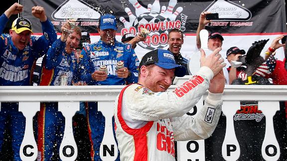 Earnhardt also became the fifth straight Hendrick Motorsports driver to win at Pocono. Owner Rick Hendrick was not at the race, though he did talk to his winning driver on the phone on pit road.