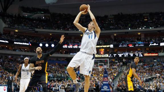 "I'm fortunate to have great teammates to put me in position to keep scoring, even as I'm older," said Nowitzki, a 36-year-old who has spent his entire 17-year career with the Mavs. "It's been fun. Still competing at a high level and hopefully will win a lot more games these last couple of years, which really means more to me right now than all the points. But it's definitely been a fun ride."