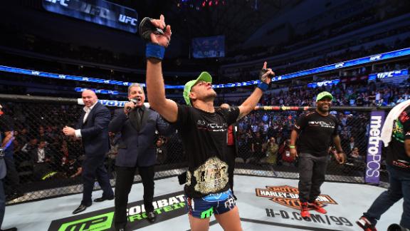 He opened a cut over Pettis' right eye in the second round and threatened to submit him with a kimura and rear-naked in the fourth. Pettis (18-3), considered one of the most dynamic offensive fighters in the sport, was forced to fight with his back to the fence for nearly the entire 25 minutes.