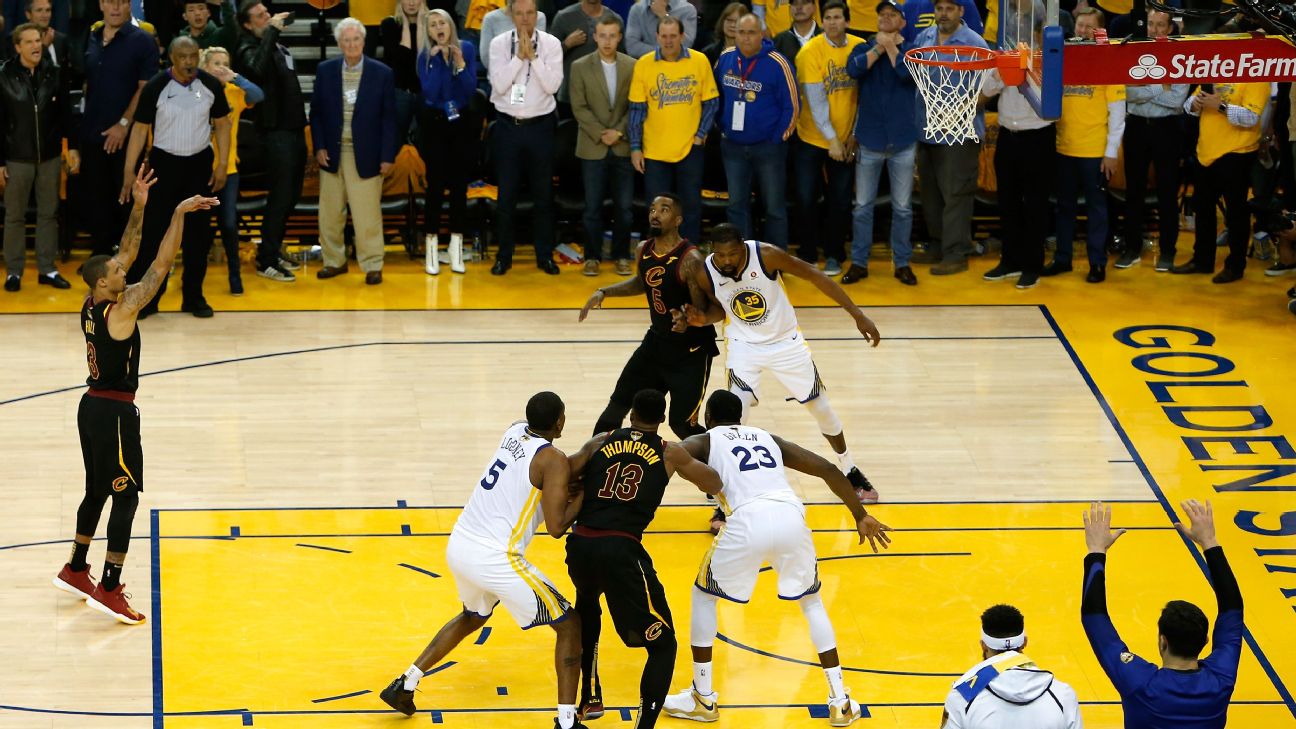Hill missed the shot, leading to a wild sequence in whichJR Smith grabbed the offensive rebound and dribbled out past the 3-point line with the score tied 107-107 rather than looking to score before the clock expired.