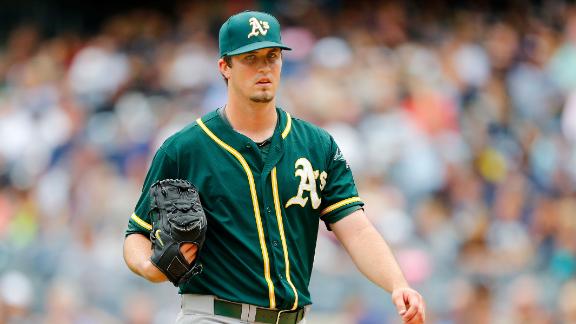 Pomeranz (5-4) struggled in his shortest outing since joining the A's rotation in early May. He allowed eight hits and eight runs -- seven earned -- with two walks and four strikeouts.