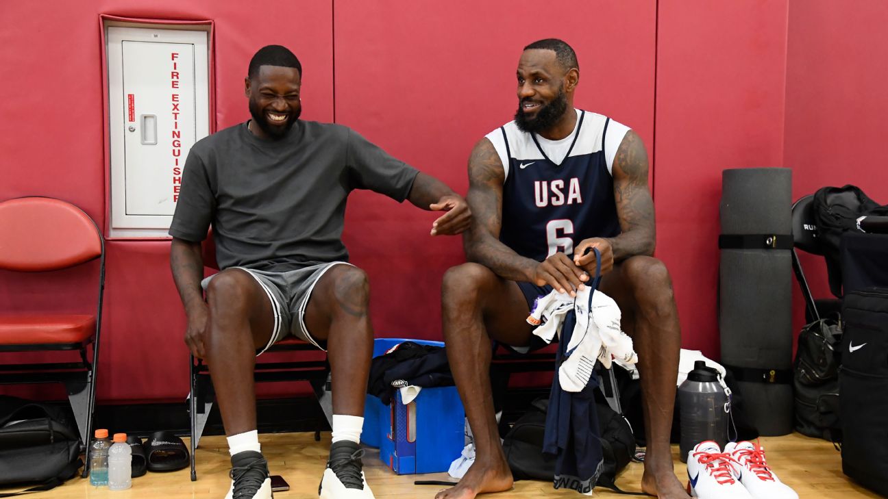 Wade called the play a "typical fast break" between him and James and said he never saw the dunk. The NBA Hall of Famer stopped by Team USA's practice Tuesday alongside Carmelo Anthony.