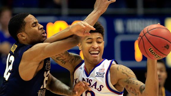 He is averaging 14.2 points and seven rebounds for the Jayhawks, who clinched the outright Big 12 regular-season title with the overtime victory over the Mountaineers.br/]