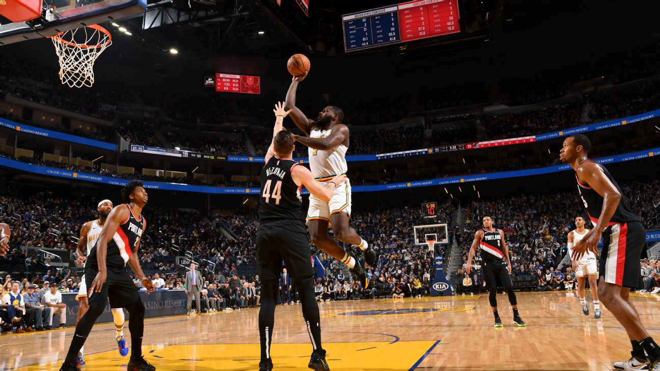 The total commitment was exemplified up and down the roster, but especially by two-way players Ky Bowman and Damion Lee. The pair combined for 37 points, the most points ever by two-way players in a game, according to the organization. Aside from Paschall's success, one of the key moments of the night came with 6:12 left in regulation and the Warriors clinging to a three-point lead, when Bowman drove down the lane and finished at the rim only to get an elbow from Trail Blazers center Hassan Whiteside after the play.