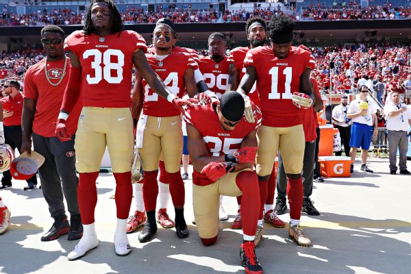 From there, Reid knelt alongside Kaepernick and linebacker Eli Harold for the entire season. Before this season, Reid decided he would go back to standing during the anthem, but racially charged unrest in Charlottesville, Virginia, in August made him reconsider.