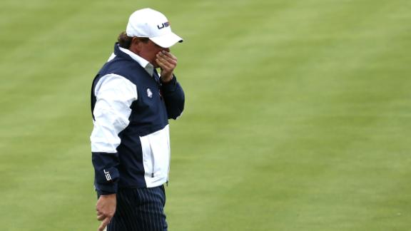 One of the questions that week was whether Mickelson and Bradley, who had gone 3-0, should have sat out the final team sessions. This time, the question was whether Bradley and the 44-year-old Mickelson should have sat out in favor of the youngest pairing in Ryder Cup history -- the 21-year-old Spieth and 24-year-old Reed.