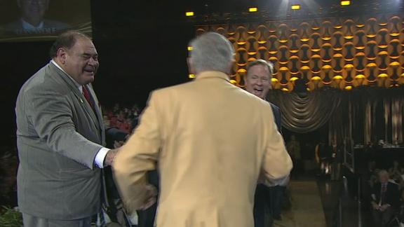 During Thursday night's gold jacket ceremony ahead of this weekend's Hall of Fame induction in Canton, Ohio, Wolf was shown telling Goodell, "Way to go on that Brady thing."