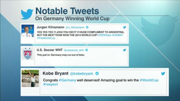 Mario Gotze scored the crucial goal with seven minutes of the extra period remaining, with many of the famous faces in the crowd later taking to Twitter to congratulate Joachim Low and his players.