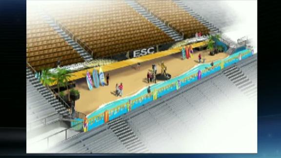 Lassiter said the beach club idea was executed quickly because the stadium, built in 2007, is made out of steel instead of concrete. The beach play is not unique. This past season, the NFL's Jacksonville Jaguars built cabanas and pools inside their stadium.