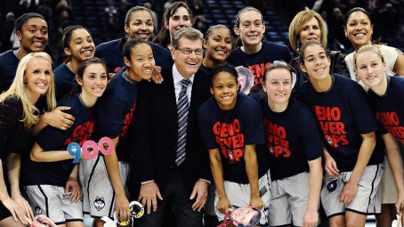 "The bottom line is, nobody can score," Auriemma said. "And they'll tell you that it's because of great defense, great scouting, a lot of teamwork. Nonsense, nonsense. College men's basketball is so far behind the times it's unbelievable."