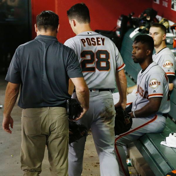 Posey had to gather himself after the blow to his mask in the second inning. He singled in the third inning and, upon reaching first base, was tended to by a trainer and first base coach Jose Alguacil.