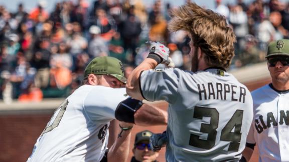 "I wasn't really thinking about it at all," Harper said. "But when somebody comes at you like that, throws a 90 mph fastball where he did, I wasn't very happy with it and took it into my hands and tried to go after him."