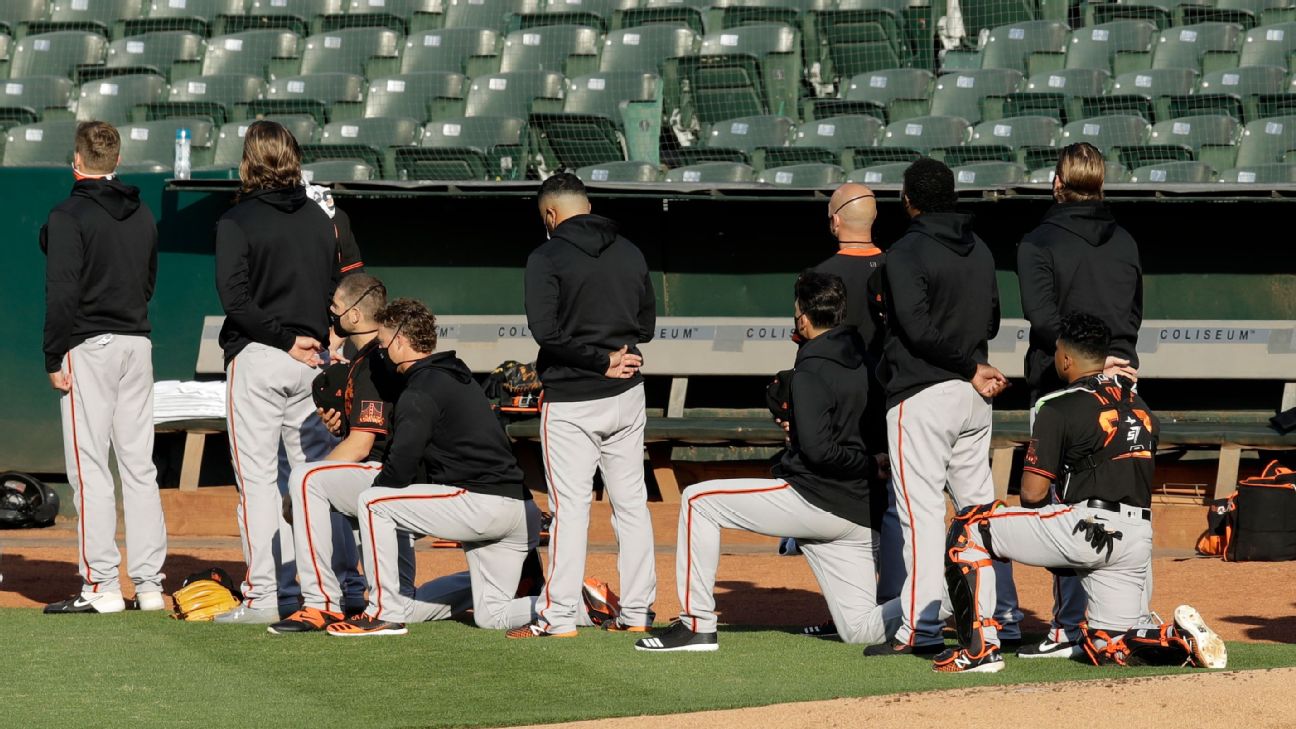 Giants president Farhan Zaidi said in a statement after the game that the entire organization is "proud of our players and staff for continuing to participate in the national conversation about racial injustice."
