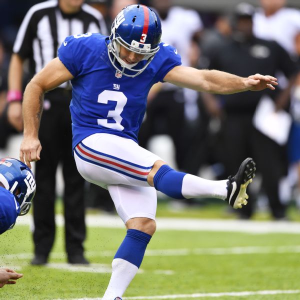 Giants coach Ben McAdoo told WFAN that the Giants will "kick the tires" on players and sign one to kick in Sunday's game. Asked if any player on the team was an emergency kicker, McAdoo mentionedOdell Beckham Jr., but later said he doesn't expect to use his star wide receiver "in that role."
