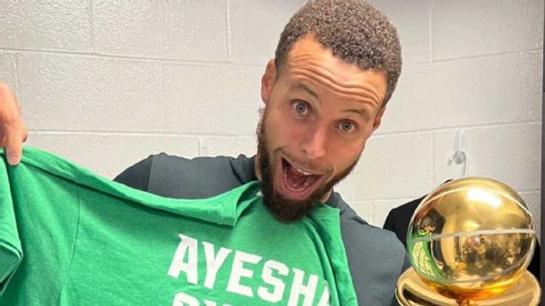 Curry, who received Finals MVP, remembered what Boston sports bar Game On! Fenway said about his wife Ayesha's culinary skills. The restaurant posted a picture of a sign with the phrase "Ayesha Curry Can't Cook" ahead of Games 3 and 4. Ayesha is a celebrity chef and cookbook author and has a show on the Food Network called "Ayesha's Homemade."