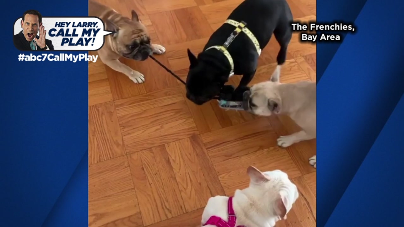 SAN FRANCISCO (KGO) -- In this edition of "Hey Larry, Call My Play!" it's an epic tug-of-war between three French bull dogs!