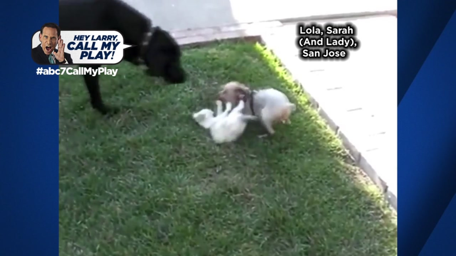 SAN JOSE, Calif. (KGO) -- In this edition of "Hey Larry, Call My Play!" Not even Lady the lab can stop this pint-sized battle for supremacy.