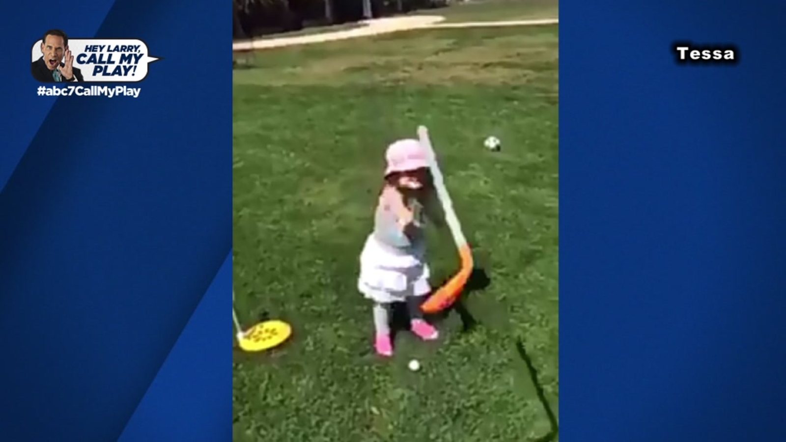 In this edition of "Hey Larry, Call My Play!" Tessa the toddler takes a swing at golf.