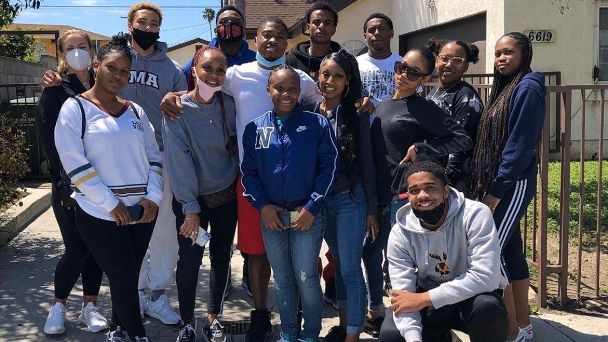 I'm in South Central L.A., the Crenshaw district. My day starts with a Zoom meeting with my team, just a lot of Zoom classes or meetings with academic advisors. I'm working out in my front yard. It's been slow, but I can't complain. There's a lot of kids on my team from L.A., so I see them frequently. We work out together still.