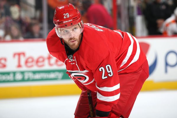 The 30-year-old was acquired by Carolina from the Chicago Blackhawks in the offseason, and he had appeared in seven of Carolina's 13 games this season, scoring once while averaging 9:42 in ice time per game.